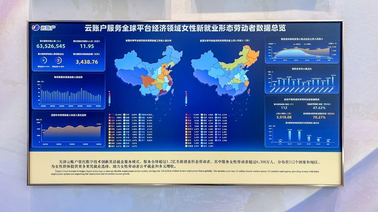 “云账户服务全球平台经济领域女性新就业形态劳动者数据总览”在数智赋能妇女和女童成果展的“科技赋能区”展出